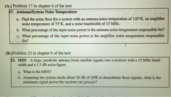 Solved: Antenna/System Noise Temperature A. Find The Noise... | Chegg.com