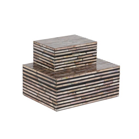 Set Of 2 Modern Striped Wooden Boxes With Shell Inlay Black Brown Olivia May Target